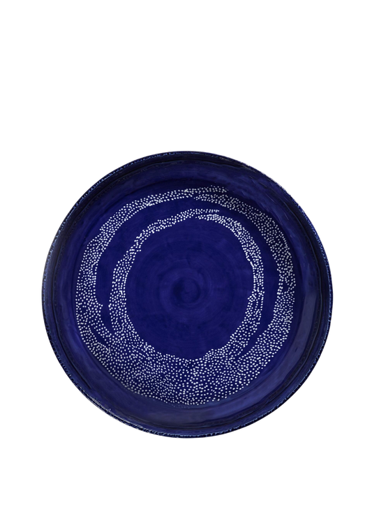 serving bowl blue with white dots