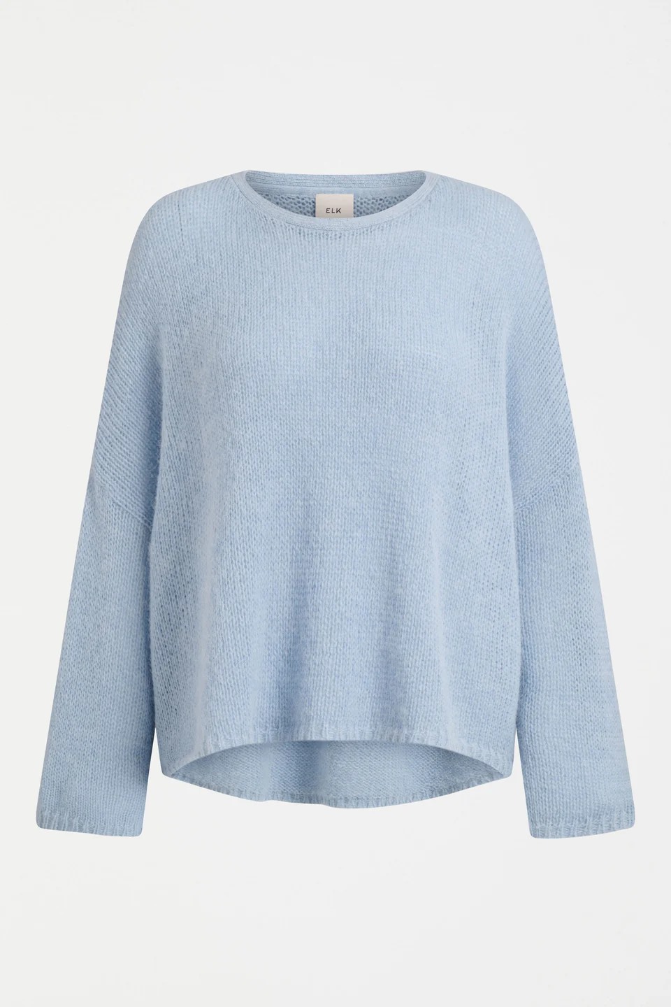 The ELK Agna Sweater is a classic, best selling ELK style and a firm favourite of our team and customers. Appreciated for its laid back aesthetic and year-round wearability, this relaxed-oversized, boxy fit sweater features an exaggerated dropped shoulder and a fluted wide sleeve. Draping casually across the body, this sweater is crafted from a soft, lightweight alpaca-wool blend yarn.