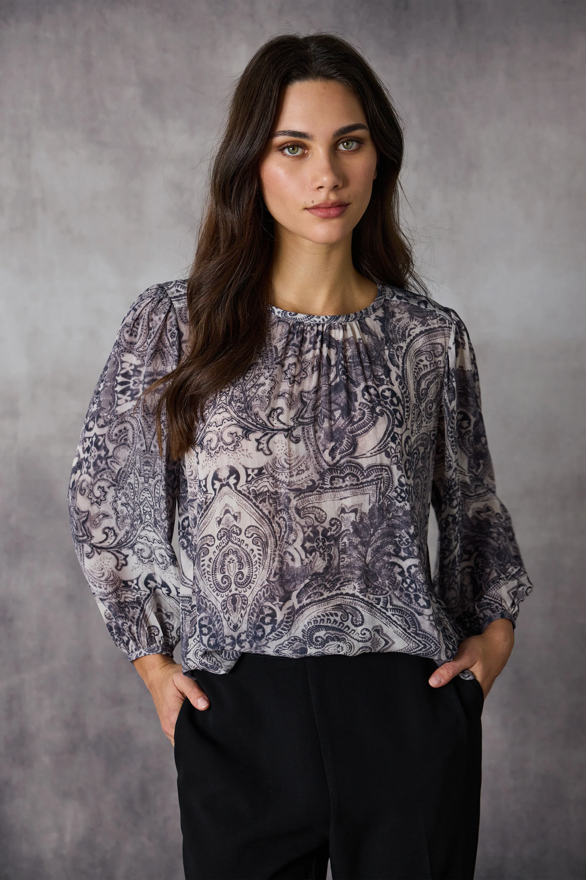 The Alba Top from Lania offers a relaxed, floaty fit with 3/4 sleeves gathered into bind elasticated cuffs. Soft neckline gathers highlight the striking Alba Print, making it the focal point of this elegant style. Perfect for effortless dressing, it combines comfort and charm in a beautifully feminine silhouette.