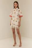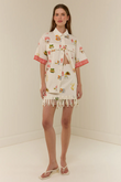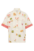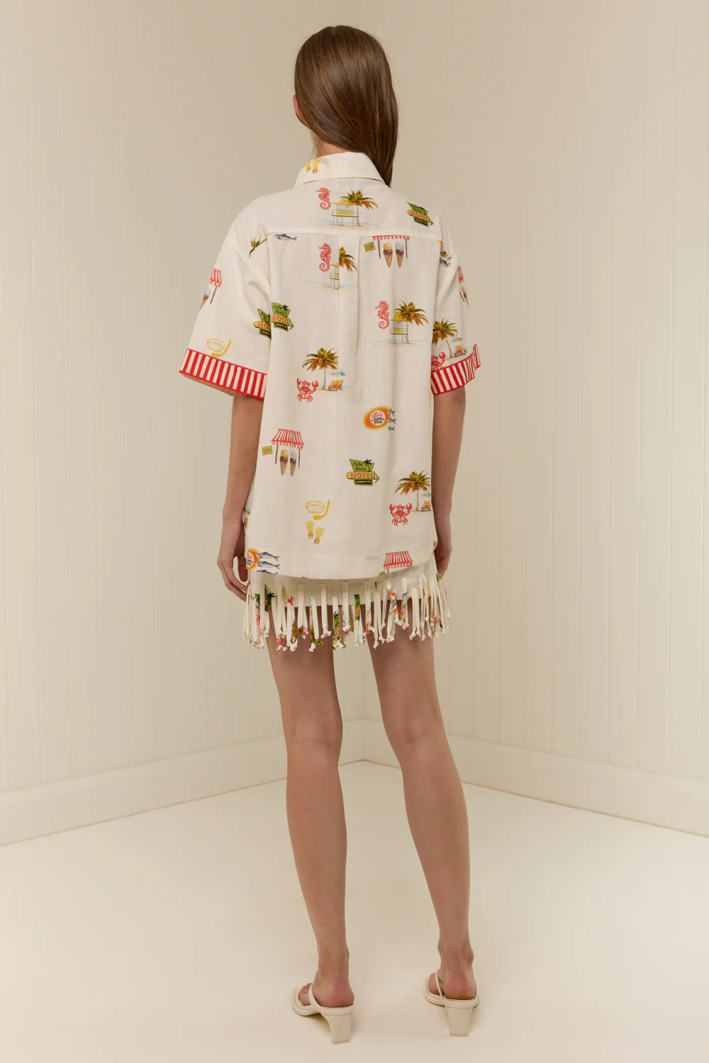 The Palm Beach Alto Shirt in the exclusive Tropicana print is a shirt silhouette crafted from a premium Linen blend. The Alto Shirt is designed to be an oversized boxy fit, featuring statement pockets, contrast border detailing and an embroidered pocket design element.