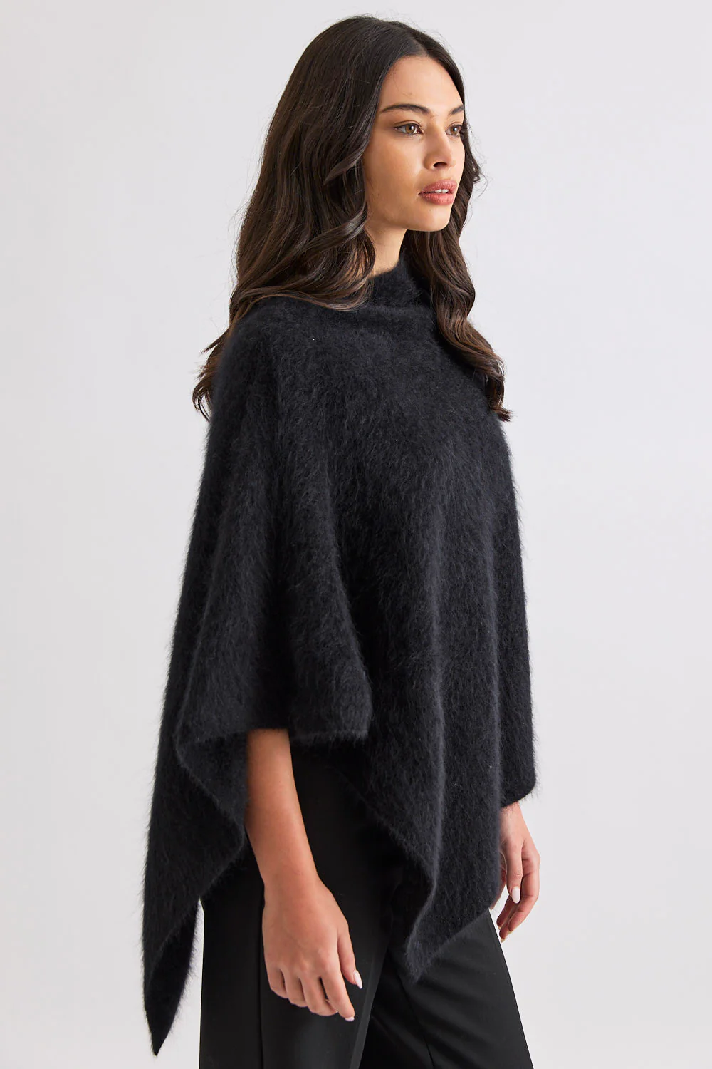 The Mia Fratino Brushed Cape is the ultimate in effortless luxury. Crafted from a soft, lightweight blend of brushed Mongolian cashmere and merino wool, it drapes beautifully and layers with ease. Designed in a versatile black, this one-size cape is the perfect travel companion—easy to carry, endlessly wearable, and an elegant alternative to a jacket.
