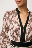 Showcasing an exclusive Russet Palm placement embroidery, the Camille Dress features intricate botanical motifs layered with graphic contrast trims for a bold yet timeless look. The curved hemline creates a flattering, elongated silhouette, while the self-tie waist belt defines the figure with effortless sophistication. A softly structured stand collar and button-through front complete the design, allowing for versatile styling from day to evening.