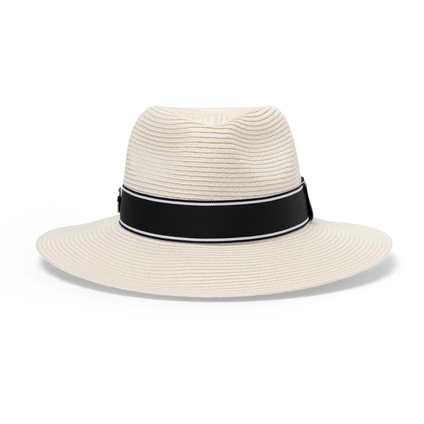 In a sophisticated ivory shade, it features a bold black and white ribbon trim, complete with signature DH stud. The magnetized DH ball marker on the side is both a clever and practical addition. Enjoy UPF50+ sun protection, lightweight comfort, and breathable design with this must-have accessory.