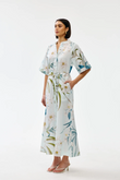 Designed with wide sleeves, in-seam pockets, and a maxi length, the Gigi Dress drapes gracefully, perfect for balmy days and relaxed evenings. Crafted from a cotton + linen blend, it offers breathability, structure, and effortless elegance.