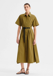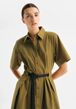 Crafted from soft cotton twill, the Morrison Ingrid Shirt Dress blends effortless structure with everyday elegance. Featuring a classic collar, button-through front, and tailored bodice, it offers a refined yet relaxed fit. The short sleeves and tunnel waist detailing add subtle definition, while the A-line midi skirt and contrast belt complete the look with a modern touch. Perfect for workdays, weekends, or special occasions alike.