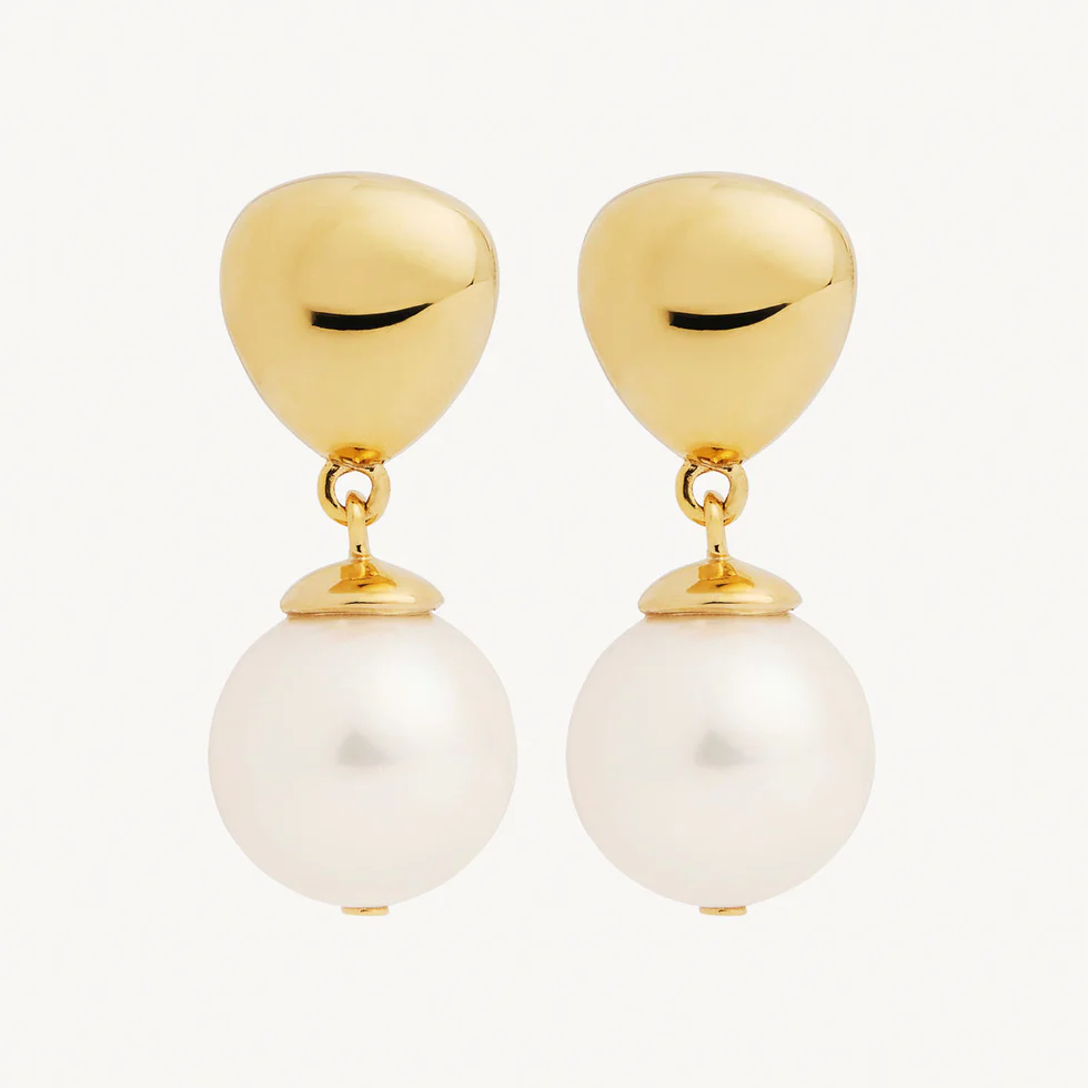 The NAJO Islander Earrings are wearable drops of water’s alchemy. Fluid and organic yet sculptural and modern, they carry a beautiful duality. Master silversmiths suspend lustrous freshwater pearls from sleek triangular studs, evoking the essence of falling water. In their elegant movement, they reflect the timeless poetry of Nature.