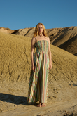 The Aston Studio Layla Dress Meadow Stripe features a shirred bodice and full skirt offering a form fitting silhouette and a flowing body for effortless movement. This cotton dress is perfect for daytime events, garden parties, or casual chic styling.