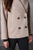 The Lania Luka Coat is an oversized cropped design crafted from a wool blend. Featuring a double-breasted front with textured natural buttons, wide collar, and statement lapel, this versatile piece adds warmth and style. A go-to coat for elevating everyday outfits with effortless sophistication.