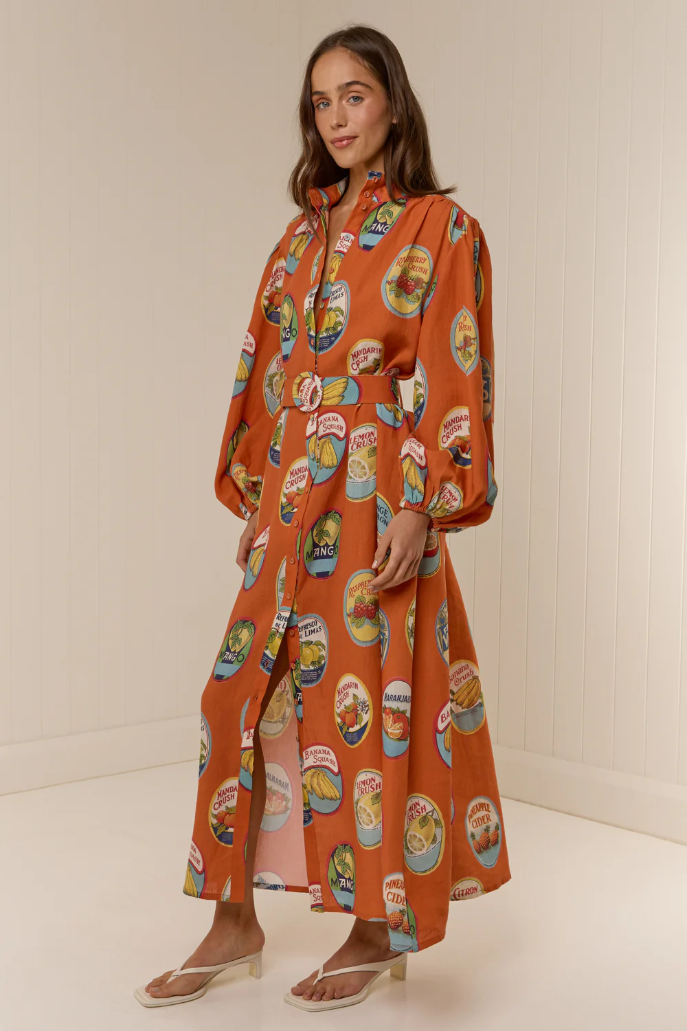 The Noddy Dress from Palm Noosa in the exclusive La Fruta print is crafted in a premium linen.