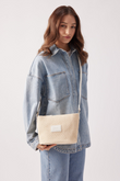 Inside, a cotton-lined interior offers a roomy main compartment, internal pocket, and secure zip-top closure to keep your essentials safe on the go.