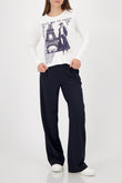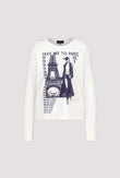 This stylish long-sleeved shirt from Monari is made from high-quality cotton with elasticated material, Eiffel Tower print and sparkling rhinestones – for dreams of Paris.