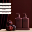 The exclusive Sweet Plum & Berries scent featuring native Davidson Plum in signature interlocking bottles with Limited Edition mulberry colourway. Rich in Australian botanicals and antioxidants, this luxurious duo transforms daily care into moments of festive indulgence.This exclusive design features interchangeable bronze and mulberry pumps, plus double-sided bottles with festive lettering on one side and timeless lettering on the other. Style it seasonally for a touch of holiday glamour, then switch it back to a classic look once the celebrations are over.